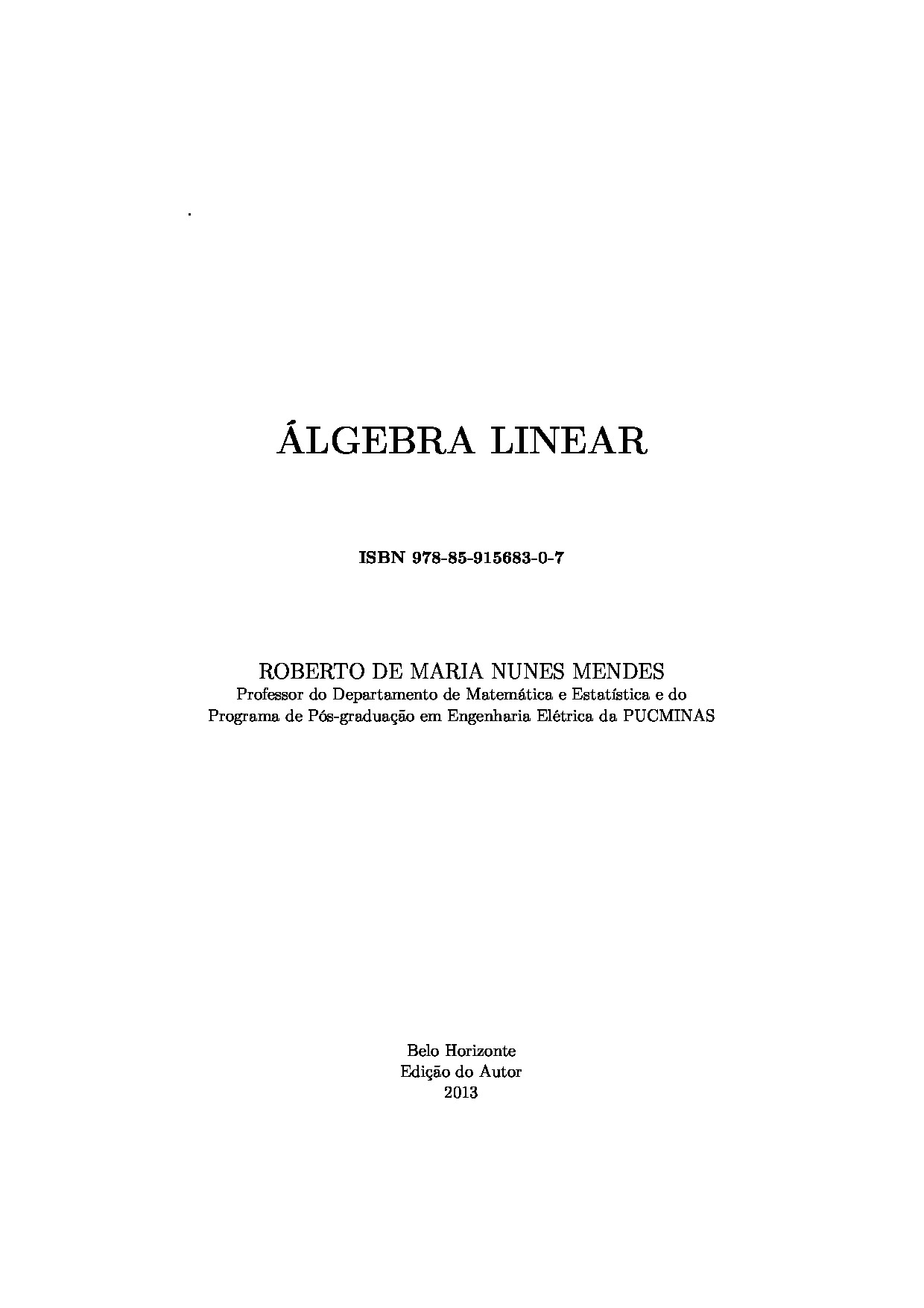 Título: Livro “Álgebra Linear” – Mendes – (Belo Horizonte, 2013) [PDF].