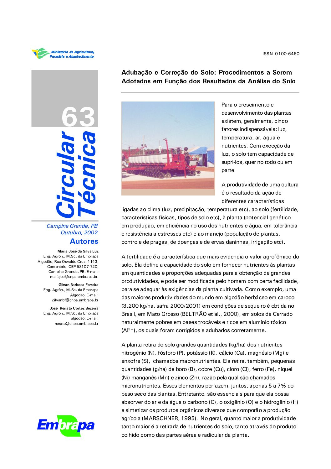 ADUBACAO E CORRECAO DO SOLO – PROCEDIMENTOS A SEREM ADOTADOS EM FUNCAO DOS RESULTADOS DA ANALISE DO SOLO – Baixar em PDF
