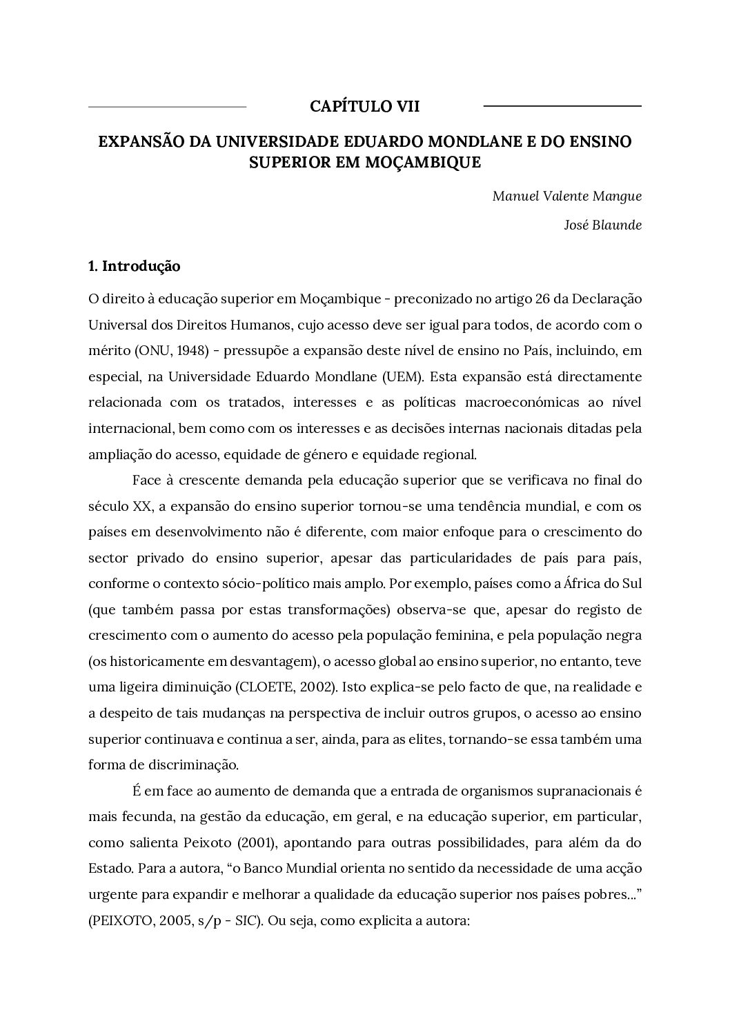Capítulo VII – Expansão da Universidade Eduardo Mondlane e do ensino superior em Moçambique – Baixar em PDF