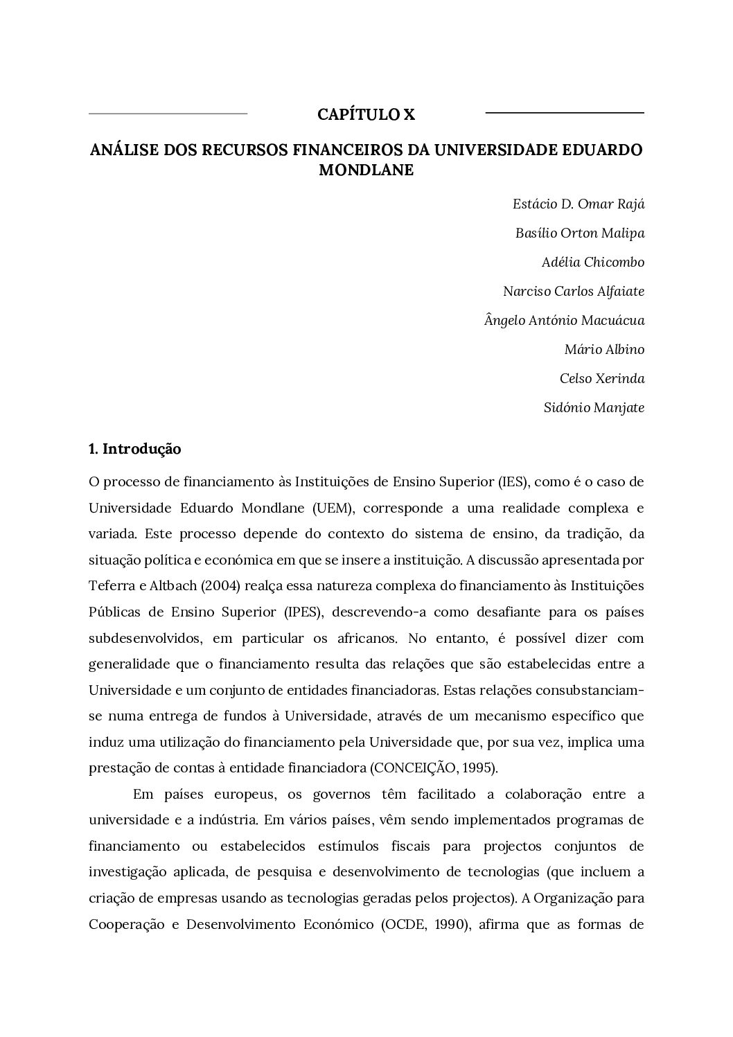 Capítulo X – Análise dos recursos financeiros da Universidade Eduardo Mondlane – Baixar em PDF
