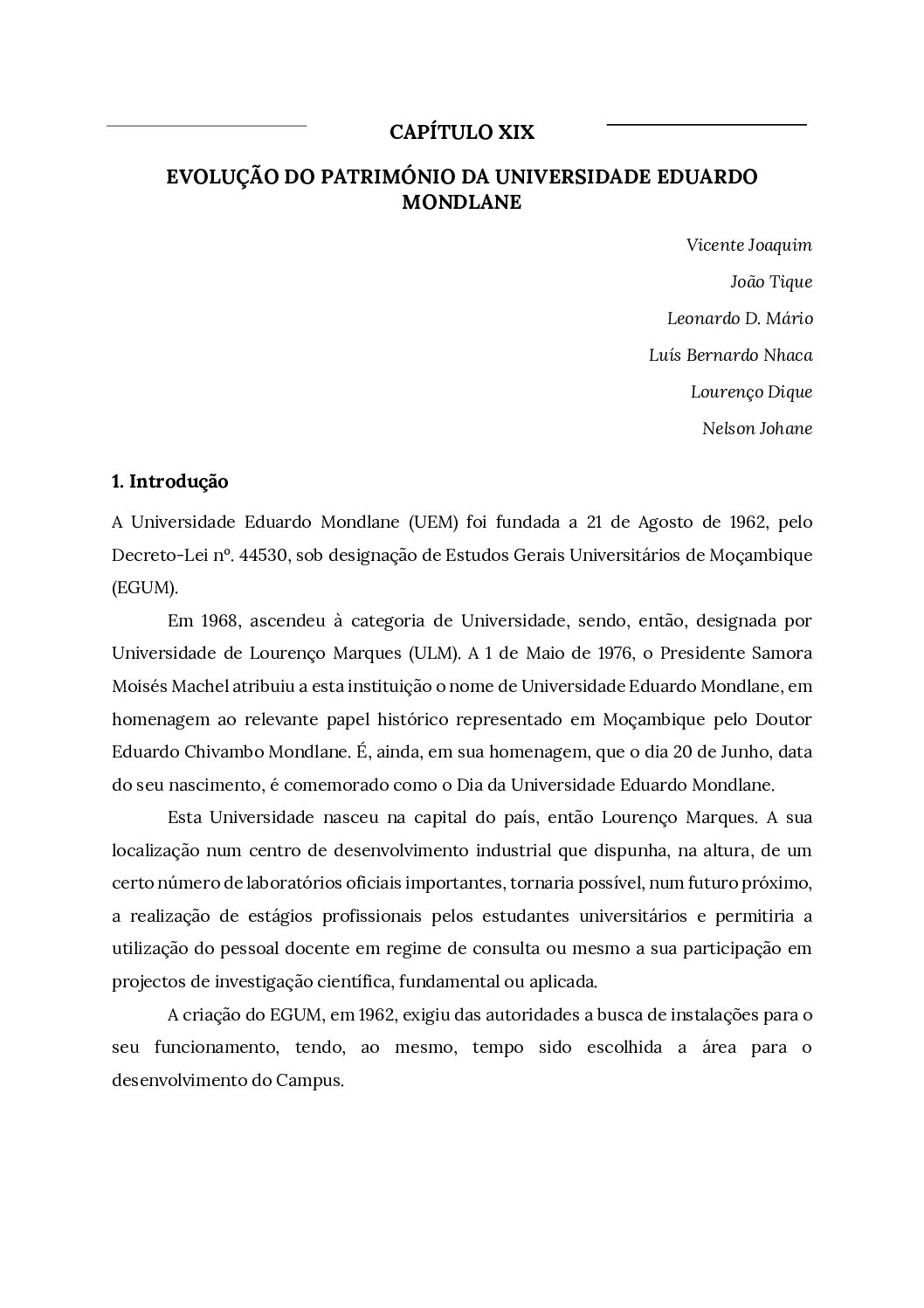 Capítulo XIX – Evolução do património da Universidade Eduardo Mondlane – Baixar em PDF