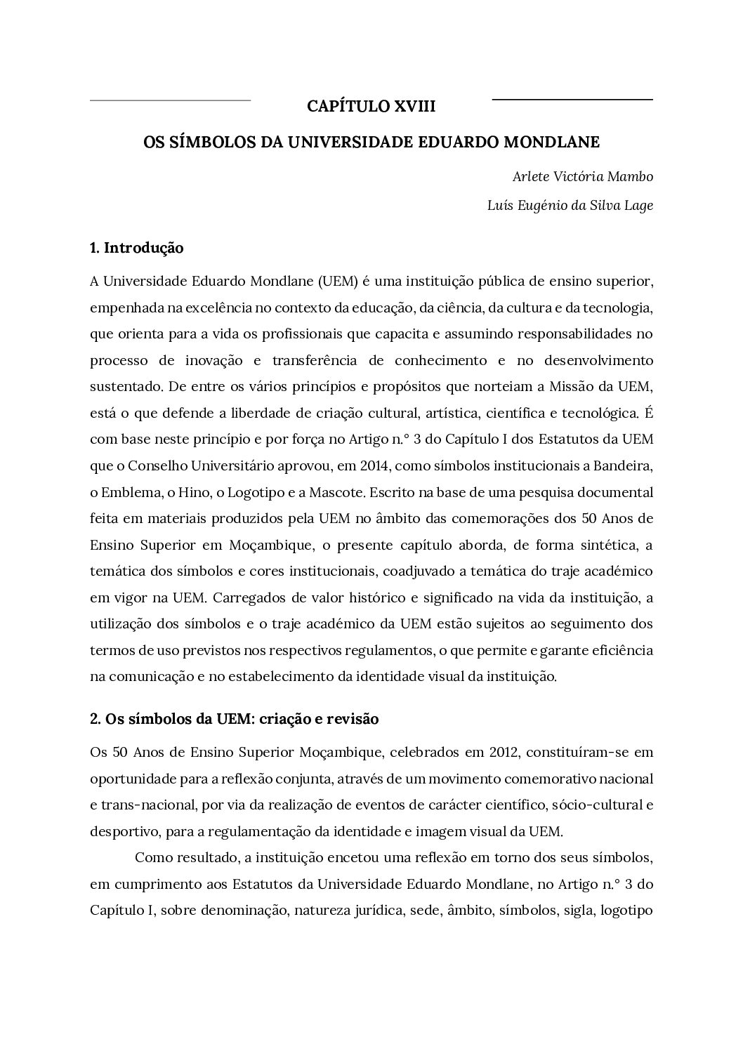 Capítulo XVIII – Os símbolos da Universidade Eduardo Mondlane – Baixar em PDF