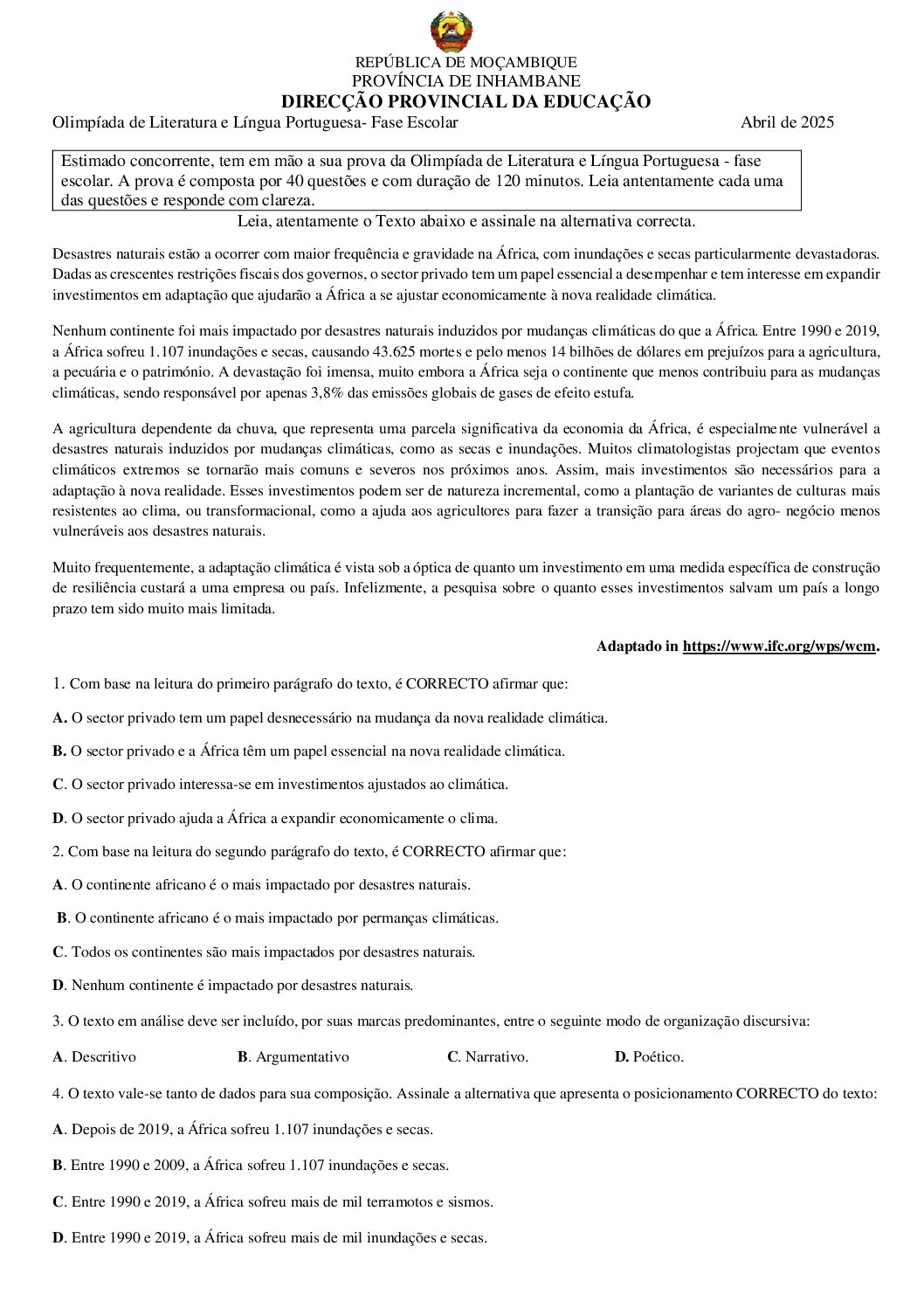 Olimpíada de Literatura e Língua Portuguesa – Fase Escolar 2025 – Baixar em PDF
