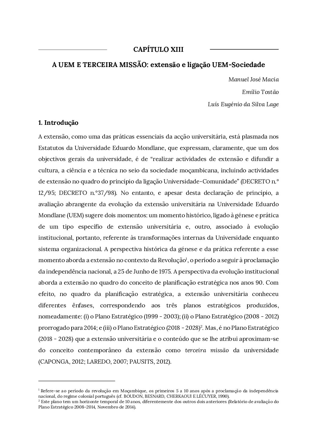 Capítulo XIII – A UEM e terceira missão_ extensão e ligação UEM-Sociedade – Baixar em PDF